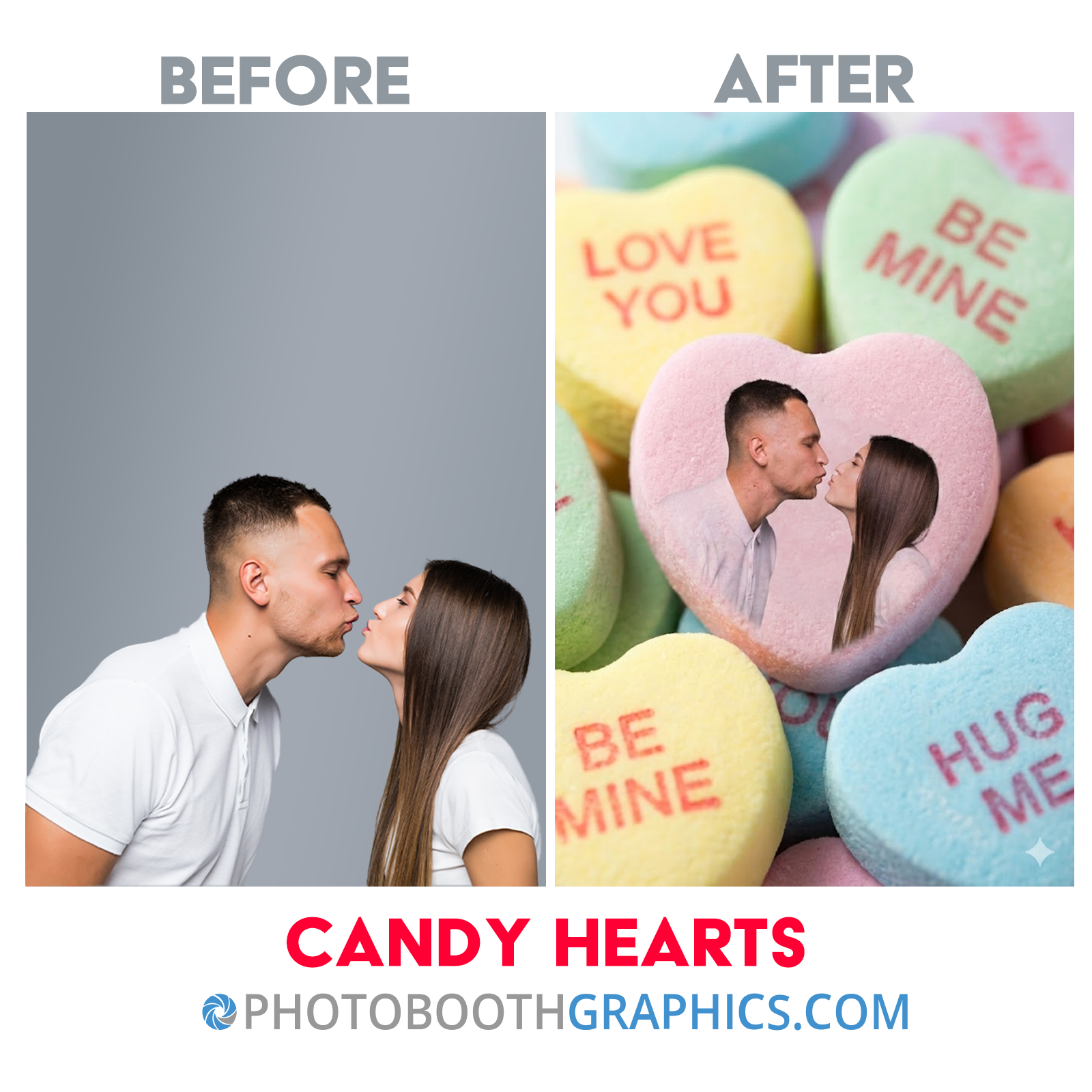 Perfect for Valentine’s Day events, parties, photo booths, social posts, and keepsakes, this effect keeps faces recognizable while adding a fun, modern candy-heart aesthetic.