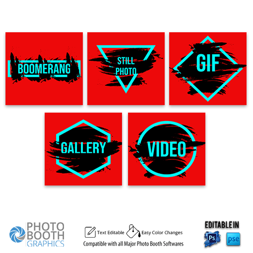 Animated buttons- perfect for Virtual Booth – Red Background with Black Paint Brush Strokes Buttons